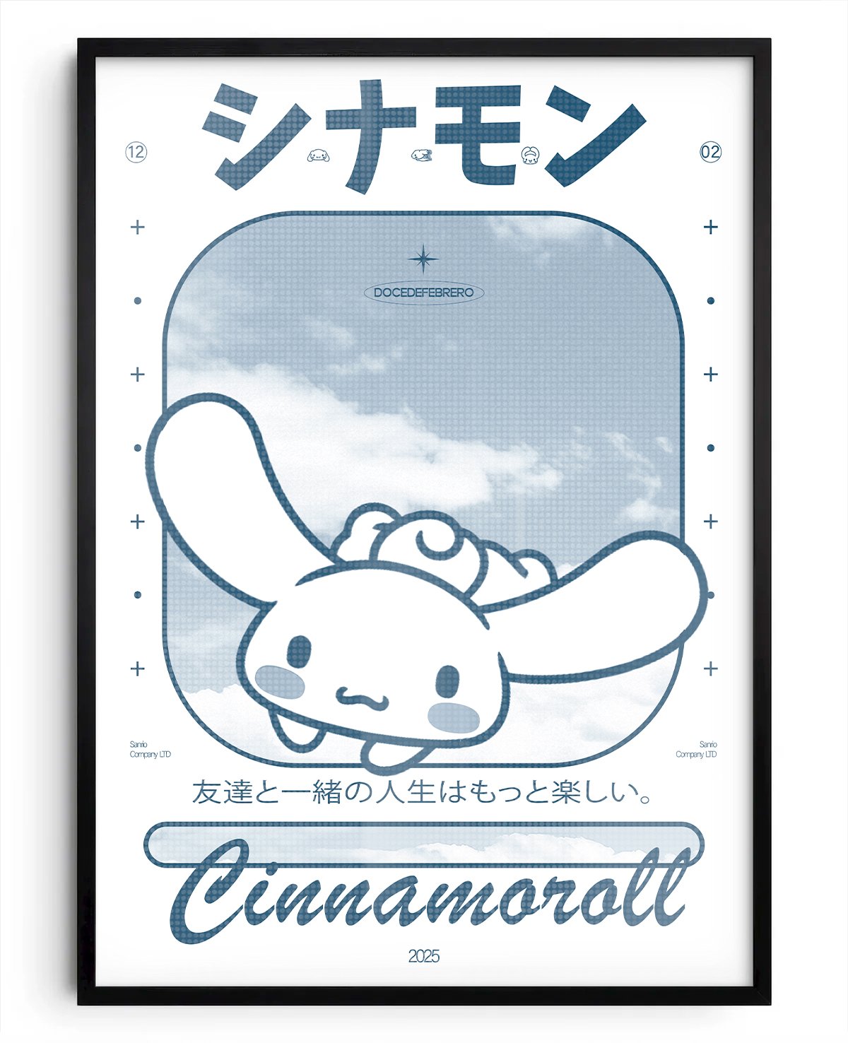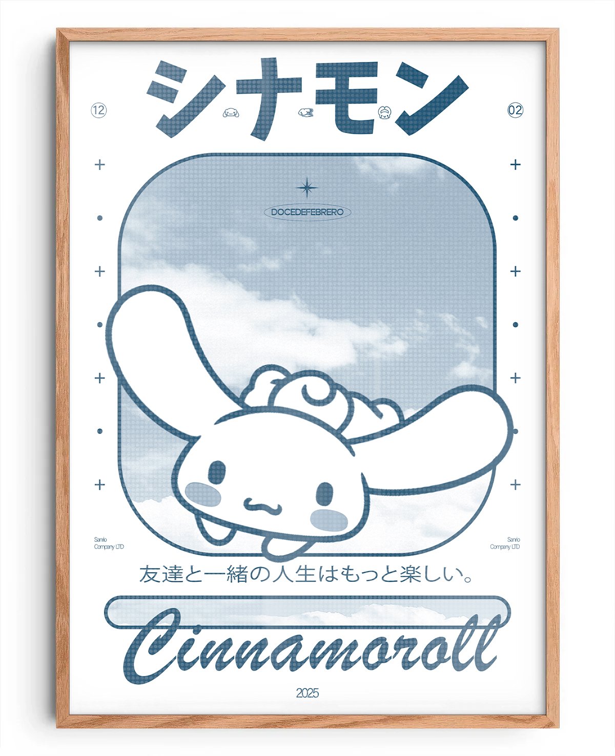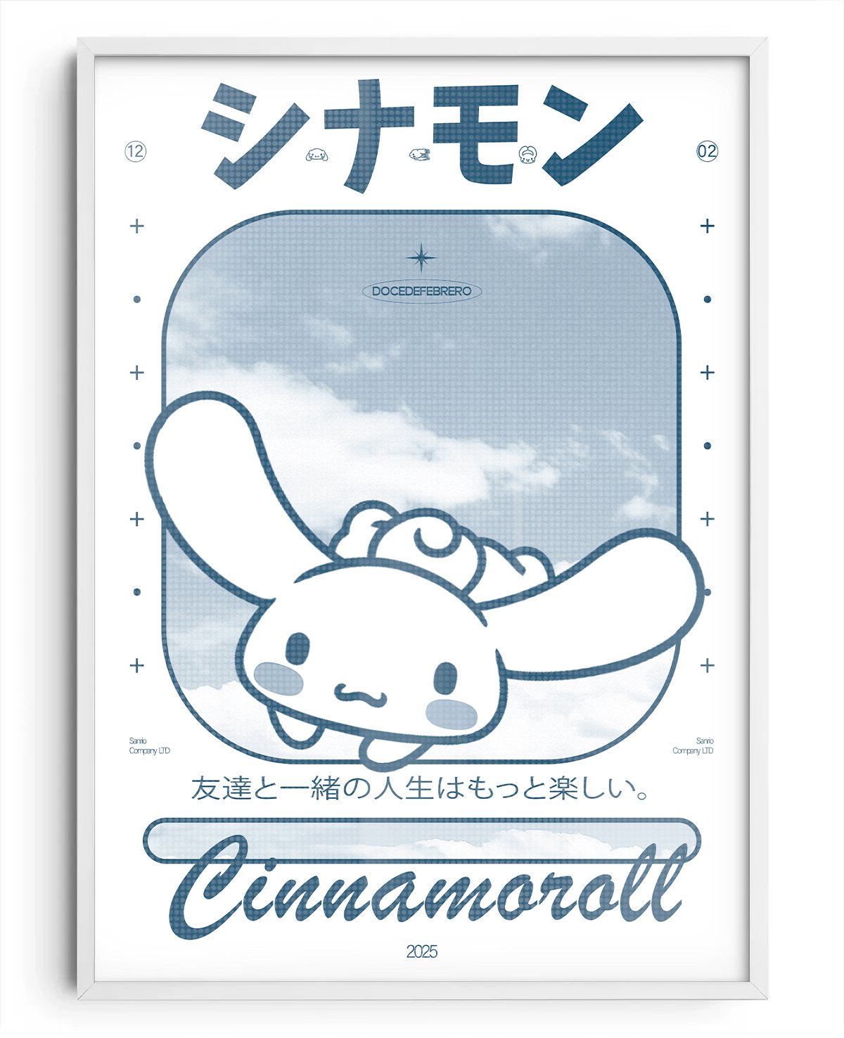 Un cuadro de uno de los personajes más queridos del universo Sanrio, reinterpretado con la esencia única de docedefebrero. Perfecto para fans de Cinnamoroll y para darle un toque adorable y estilizado a cualquier espacio.