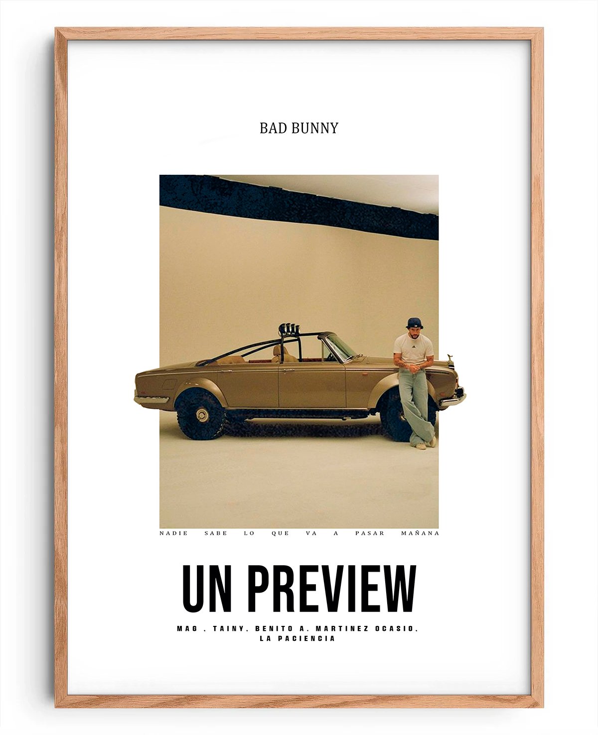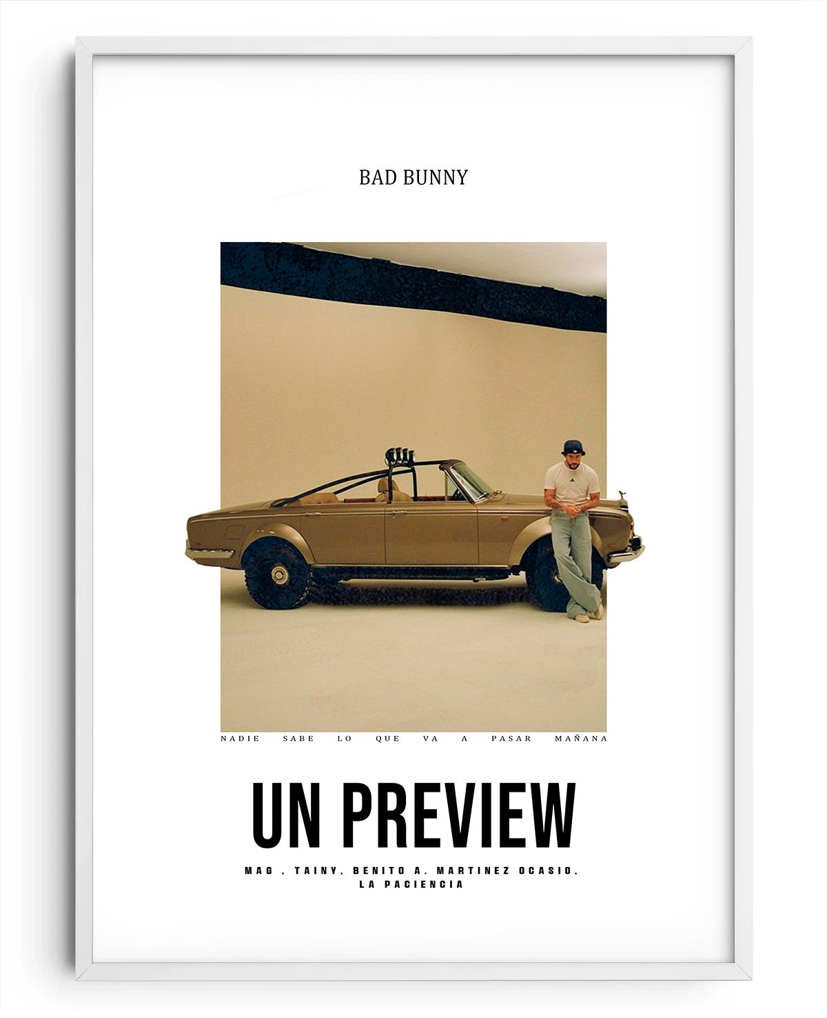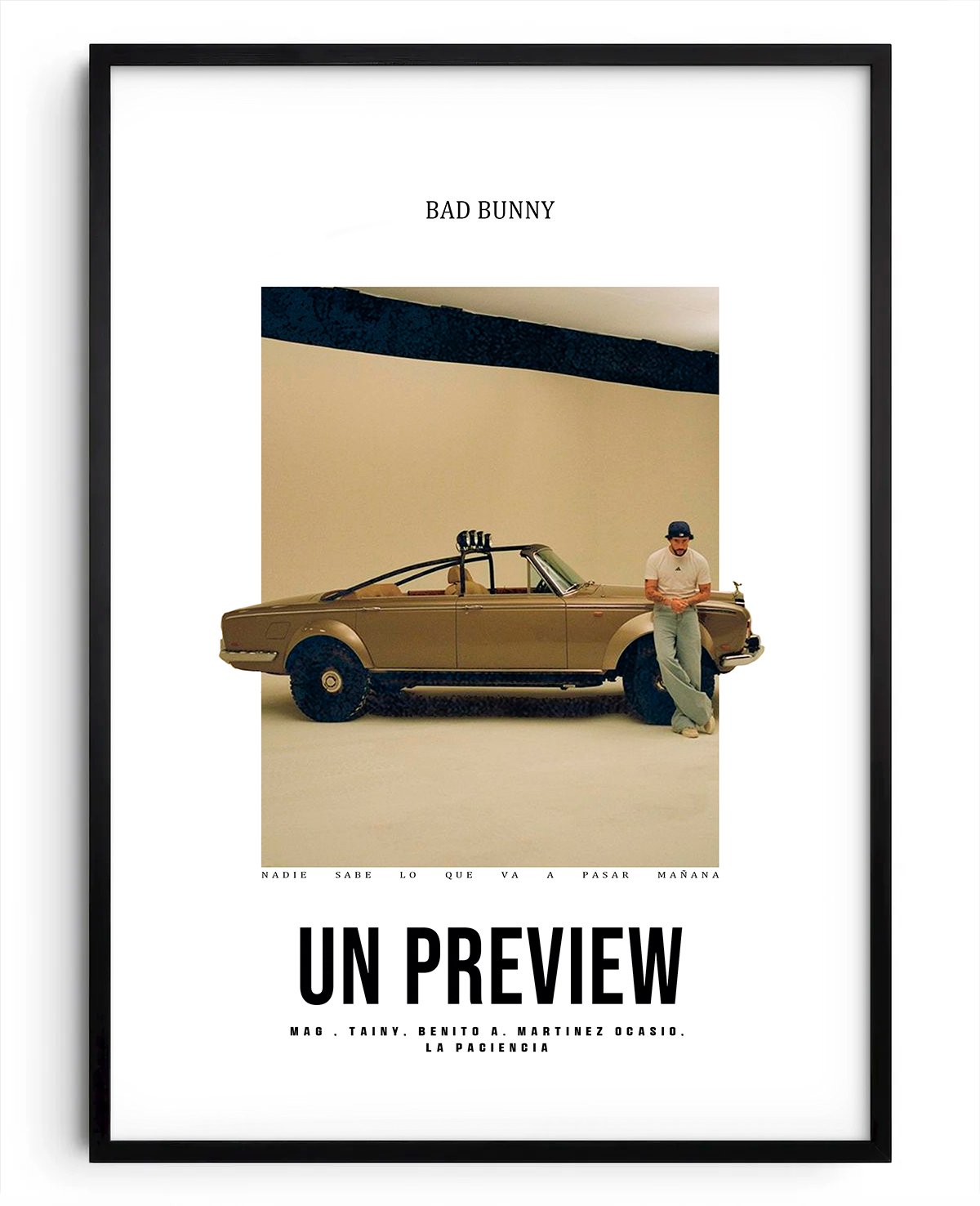 Un póster que captura la esencia de la canción y el concepto del videoclip. Perfecto para todo fan de Bad Bunny, este diseño combina estilo y narrativa visual, llevando la energía del tema directamente a tu espacio.